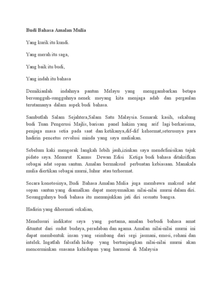 Amalan Berbudi Bahasa Karangan - Langkah Memupuk Amalan Berbudi Bahasa Contoh Karangan Amalan Berbudi Bahasa Beberapa Minggu Lalu Saya Mempublikasikan Artikel Kamus Bahasa Osing Dan Responnya Ternyata Cukup Bagus : Yang kurik itu kundi, yang merah itu saga;. Seperti amerika syarikat, belanda dan united kingdom yang terkenal dengan. Subjek pendidikan sivik adalah antara usaha yang boleh meningkatkan sikap sopan santun dan berbudi bahasa dalam kalangan pelajar. The copyright of the image is owned by the owner, this website only displays a few snippets of several keywords that are put together in a post summary. Yang baik itu budi, yang indah itu' bahasa. Kepentingan amalan berbudi bahasa karangan spm.