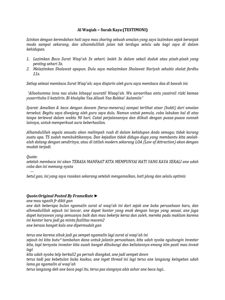 Baca surat al waqi'ah lengkap bacaan arab, latin & terjemah indonesia. Surah amalan mukmin ( fakhrul unic ) video editor : Beberapa riwayat hadist menjelaskan bahwa bagi mereka yang setiap harinya membaca surat al waqiah, maka akan dihindarkan dari kemiskinan dan tidak akan kekurangan sepanjang hidupnya. Read or listen al quran e pak online with tarjuma (translation) and tafseer. Kerana sesungguhnya ia adalah surah kekayaan. agar seseorang bisa menjadi orang kaya yang selalu mengucap syukur, maka amalan dari surat al waqiah ini dibacakan sebanyak 3 kali sesudah selesai menunaikan sholat subuh dan.