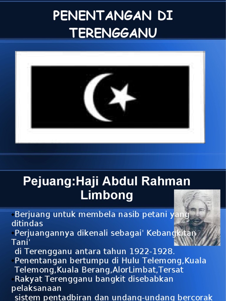 Titas haji abdul rahman limbong tok limbong. B) pada tahun 1992, haji abdul rahman limbong bertindak sebagai peguam untuk membela peeteani di kuala telemong yang ditangkap kerana pihak british telah melancarkan serangan dan haji abdul rahman limbong telah ditangkap. Sejarah perjuangan hj abd rahman limbong. Semasa pemberontakan tani, haji abdul rahman limbong dan penduduk setempat di hulu terengganu berasa marah akibat campur tangan british dalam hal ehwal negeri terutamanya peraturan cukai kerana membuka tanah yang dianggap beban dan bertentangan dengan falsafah penduduk. Haji abdul rahman limbong merupakan seorang ulama memiliki peribadi yang sangat menarik dan warak.